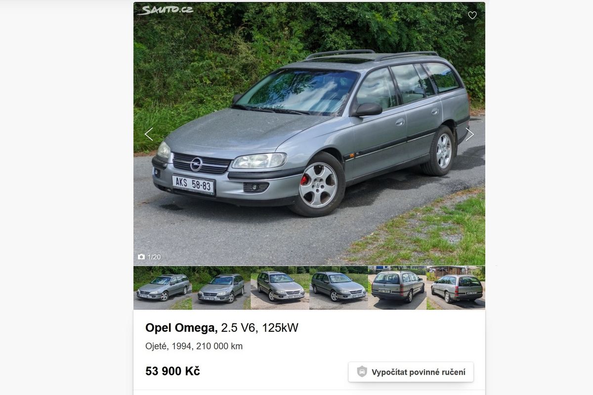 Nejlákavější na inzerovaném kombíku Omegy je atmosférický šestiválec 2,5 l, který dle tradice tohoto modelu pohání zadní kola. A v tomto případě dokonce přes manuální převodovku, takže je to vlastně takový „bavorák pro chudé“. Prodejce uvádí, že vůz je ze Švýcarska (určitě po důchodci, který s ním jezdil jen do kostela), vyroben byl v roce 1994 (už je to tedy veterán) a najeto má 210 000 km, ačkoli na tachometru „svítí“ něco jiného. V roce 2012 auto absolvovalo STK s 200 000 km, další záznam je až z roku 2016, kdy se na tachometru objevilo 80 000 km. Pak už auto moc nejezdilo.
