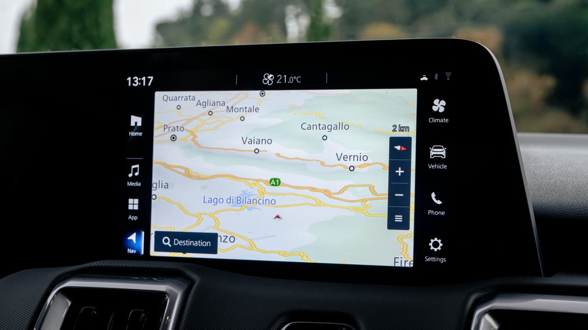 Řidiči přijde vhod moderní sdružený displej infosystému a budíků, tovární navigace sice graficky působí neatraktivně, ale jede online a leccos (radary, doprava, značky, semafory) zná. Navíc se vám mapa promítne nejen na hlavní obrazovce, ale zčásti také v pravé části přístrojového štítu. Jen ta rychlost softwarového rozhraní…