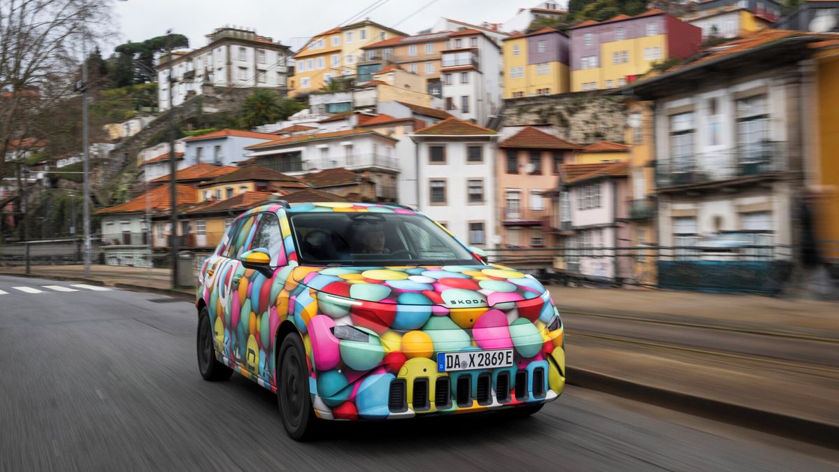 Vyrážíme na cestu s naším lentilkovým konvojem čtyř maskovaných Epiqů. Škoda se totiž rozhodla, že než něco neuměle skrývat, tak na to raději strhnou pozornost. A funguje to! Lidé na ulici otáčejí hlavy, usmívají se a ukazují palce nahoru. Epiq se jim evidentně líbí. A to ho ještě neviděli bez maskování a neřídili ho. Pak by totiž byli nadšení ještě víc.