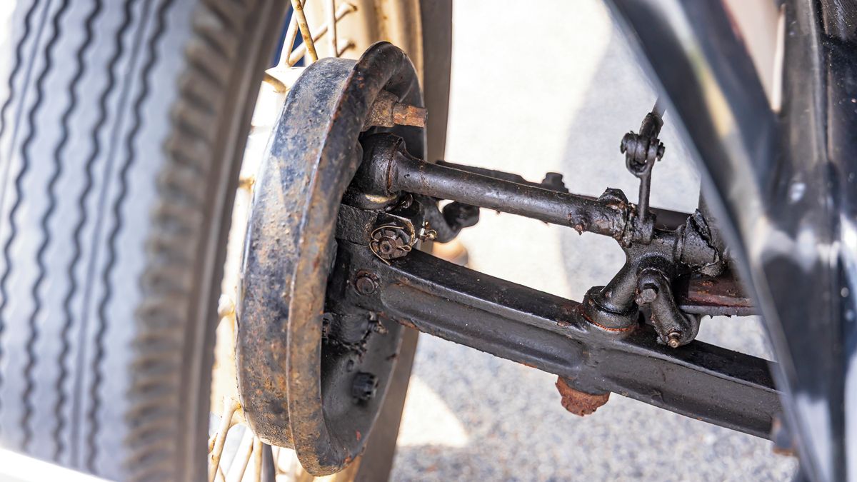 Netrvá dlouho a vesele si kodrcáme po úzké silničce v rychlostech kolem 50 km/h. Při jízdě do kopce se dá trochu přidat předstih, na rovince při vyšší rychlosti (motor se cítí v pohodě kolem 70 km/h) zase posunout dolů. Na ladiče motorů si šofér prostě hraje přímo za jízdy, zatímco průběžně koriguje směr předních kol uchycených na primitivní nápravě. Hodně předvídavosti a odstupu vyžadují brzdy, jsou totiž mechanické a ovládají je táhla, nikoliv hydraulika. Brzdí to? Velmi vlažně, ale dá se…