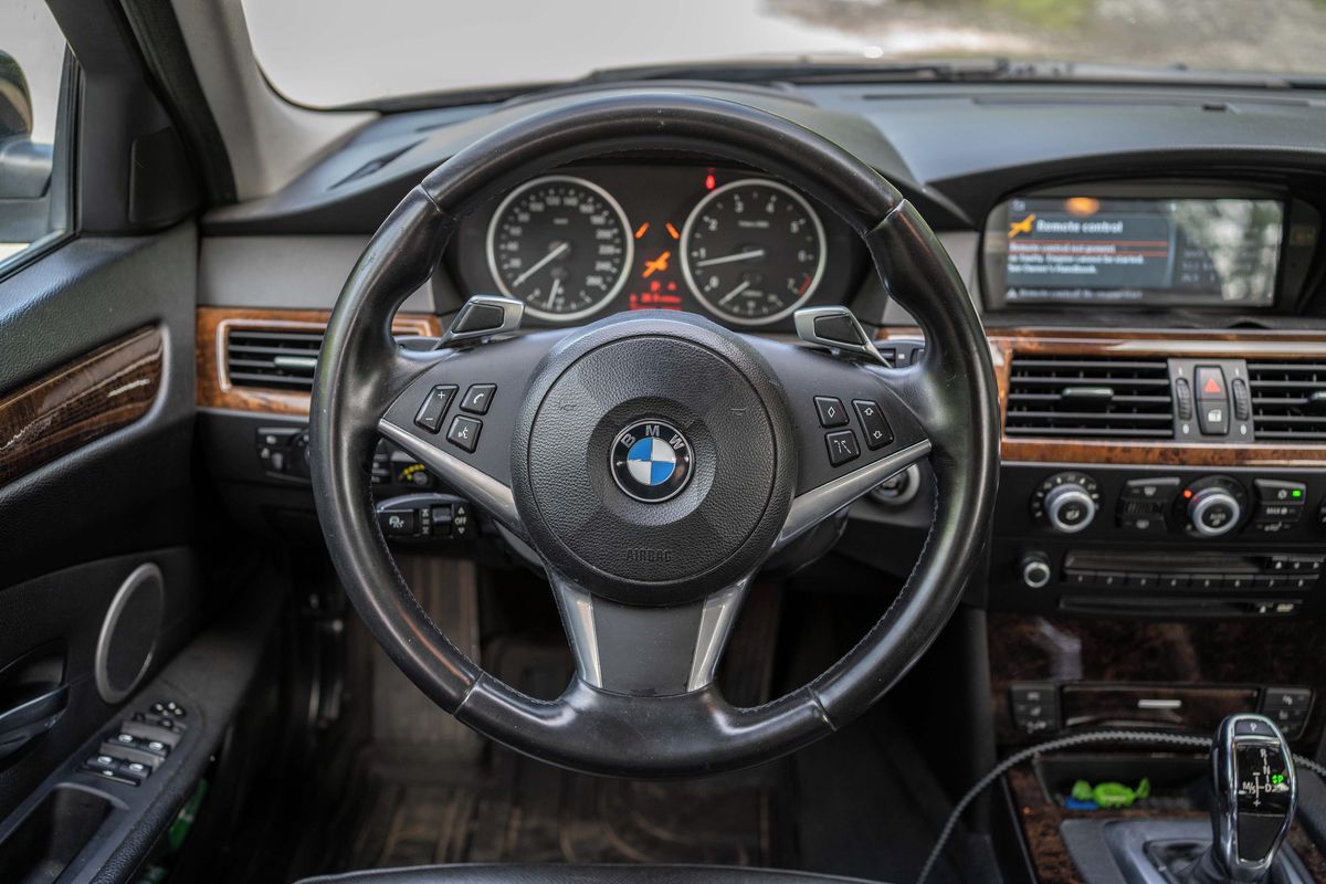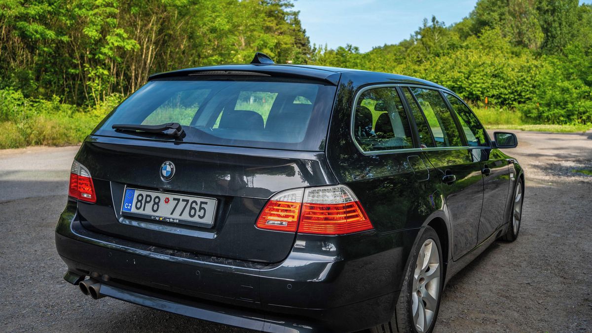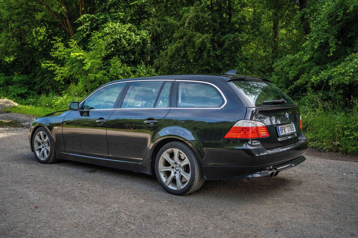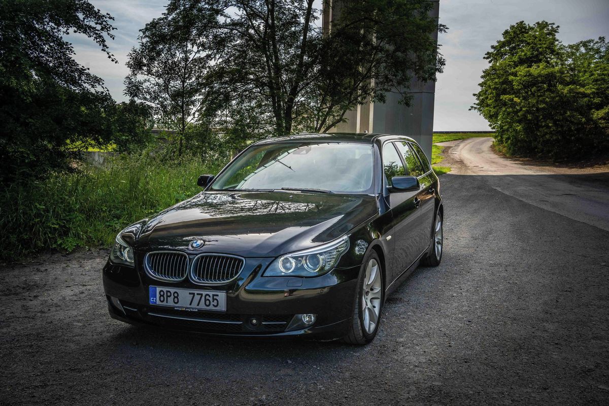 Tradice páté řady BMW sahá až do roku 1972, kdy první generace E12 nahradila modely Neue Klasse. Šlo o první model s novým pojmenováním číselné řady, a tak je řada 5 nejdéle používaným názvem u automobilky BMW. Původně se ve vyšší střední třídě nabízela jen jako sedan, později v roce 1991 přibyl u generace E39 i kombík s názvem Touring. Já se ale dnes podívám až na následující generaci z roku 2003, která dostala kód E60 pro sedan a E61 pro kombík. Facelift proběhl v roce 2007 (z toho roku je i auto na fotkách), ale pořád je to ještě z doby, kdy BMW věřilo, že velké auto má mít i velký motor.