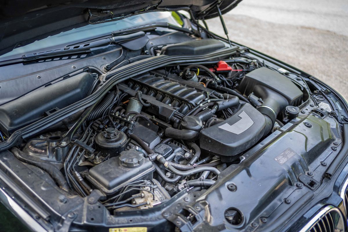BMW E61 není malé auto, ale velký motor 50i i tak vyplní celý prostor pod kapotou.