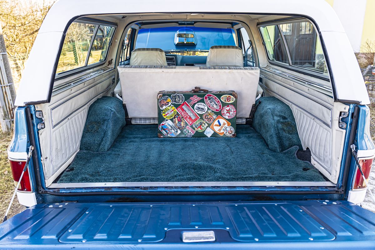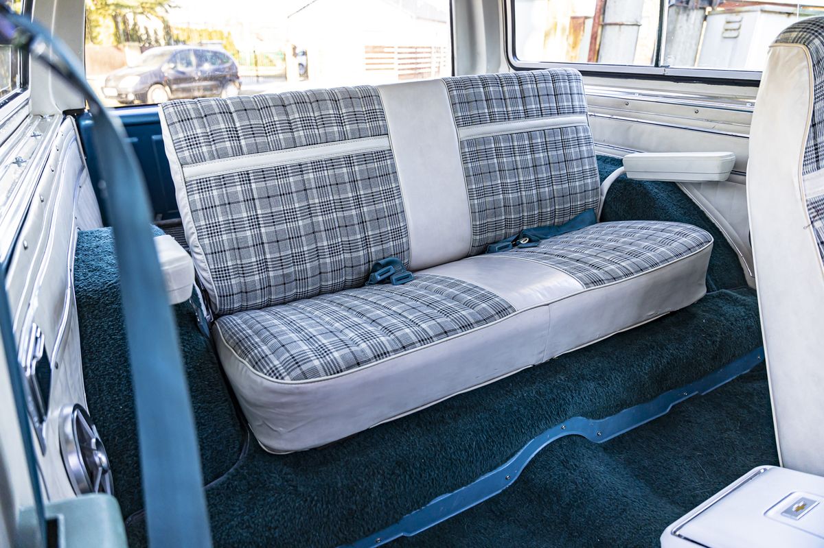 Když už sedím za sportovním volantem (který bohužel není originál, ale celkem ladí s dalšími úpravami), nemohu nezmínit čalounění. U těchto aut se sázelo na odolnost, takže použitá kombinace vinylu a látky byla vrcholem. A nejstylovější byl právě kostkovaný vzor Plaid, typický pro výbavu Cheyenne a dnes nejžádanější ze všech. Doplním, že pravá kůže se nedodávala, další možností bylo jen čistě vinylové čalounění, k němuž jste se v létě beznadějně přilepili. A to nechcete, takže raději než moderně přečalouněná sedadla volíme stylový původní vzor, který dokonale dýchá atmosférou 70. let. Komfort posádky zvyšovala silnější izolace proti hluku, koberce místo gumových podlah a v neposlední řadě zapalovač, důležitý doplněk doby. Doplním, že zvenku se výbava Cheyenne dala rozeznat ještě podle znaků a chromovaných lišt s černým nebo gumovým středem, které se táhly po celé délce vozu, ale v našem případě u renovovaného auta bohužel zatím nebyly namontovány.