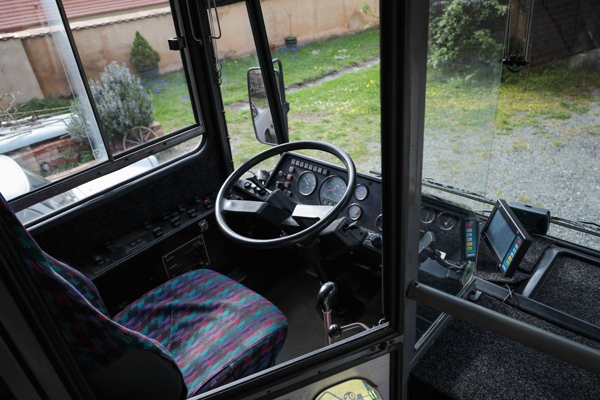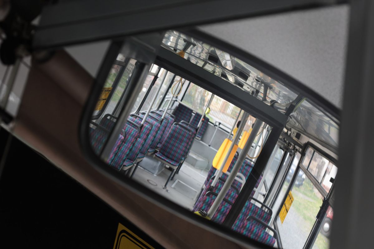 Tímto zrcátkem si řidič kontroloval za jízdy cestující v útrobách autobusu.
