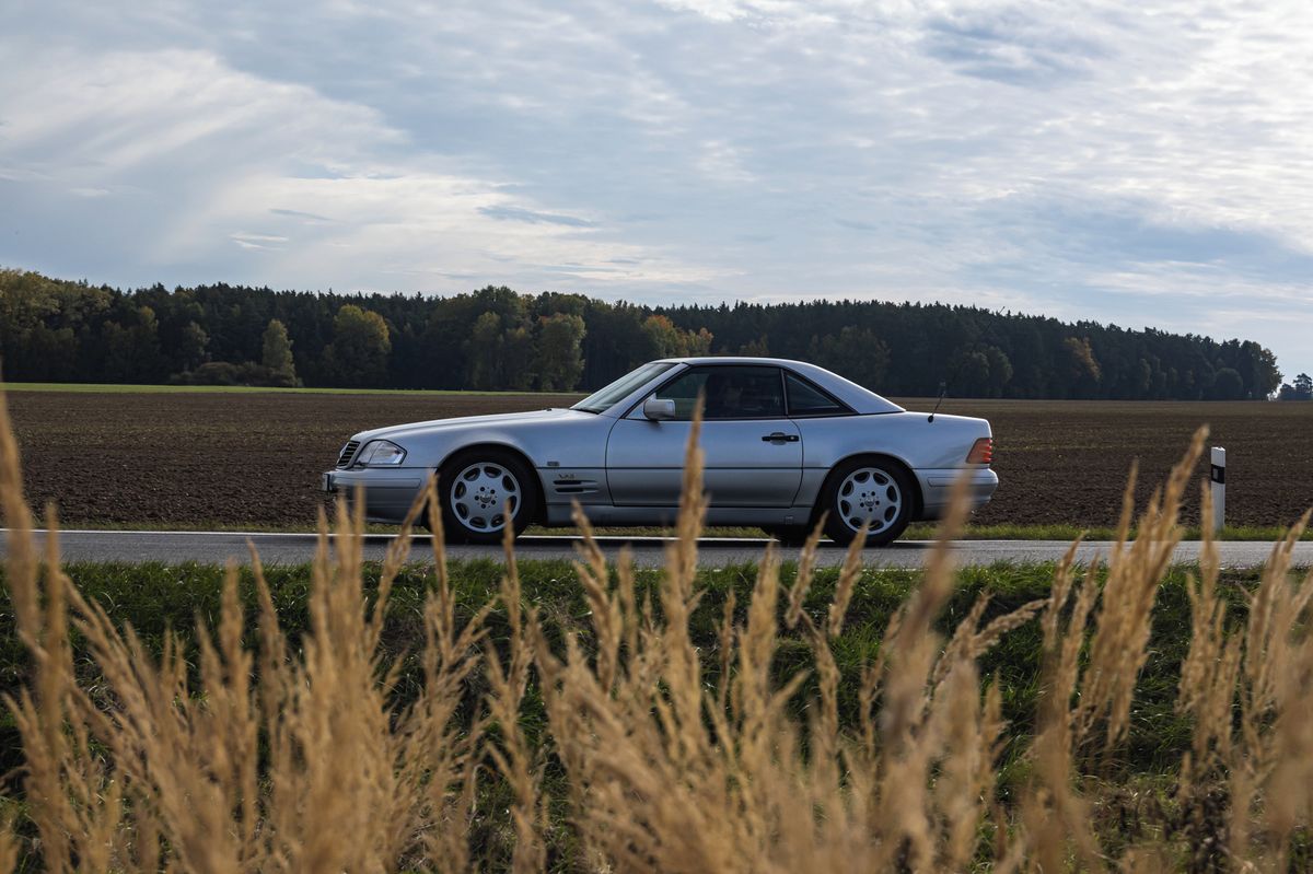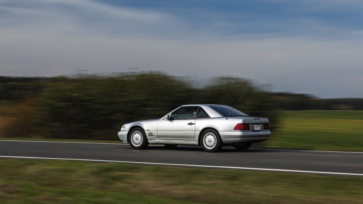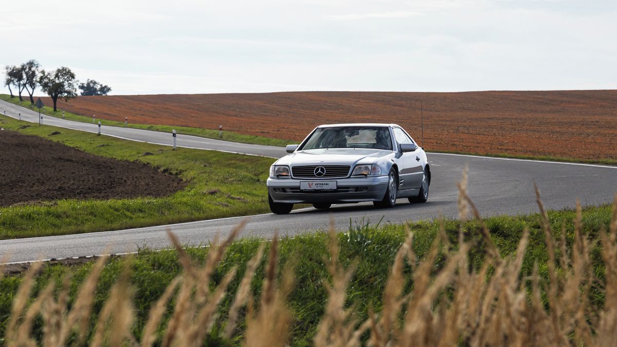 Následující kilometry odhalují, jak přesvědčivě tuhé je auto s hardtopem i po dlouhých letech od vlastního narození. Není se čemu divit, protože je SL autem bez pevné střechy, inženýři do podlahy a prahů přidali velké množství výztuh, které sice zvyšují hmotnost, ale přispívají k příkladné torzní tuhosti. Reálně mám neodolatelnou touhu vzít SL 600 někam na dálnici, kde se projeví jeho neotřesitelná stabilita, ale i měkčí nastavení podvozku s vyšším komfortem než na měnícím se povrhu okresek. Zajímavostí zmíněného podvozku ADS je fakt, že v rychlostech nad 120 km/h podvozek klesne o 15 mm k zemi, aby ještě pomohl aerodynamice a jistotě posádky. Dlouho jsem neměl takovou touhu s třicet let starým autem letět až k omezovači, který je tradičně na hodnotě 250 km/h.