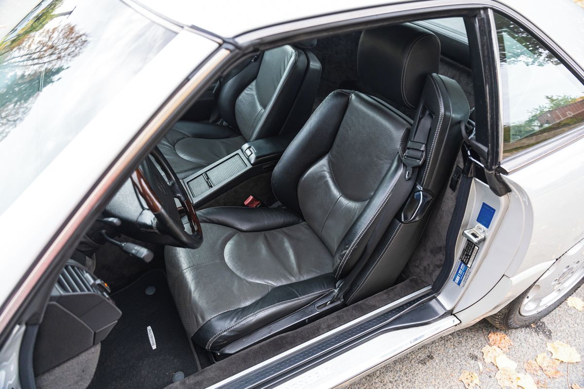 Tohle GT v sobě skrývá celou řadu zajímavostí. Tak například R129 bylo prvním autem na světě s automaticky výsuvným ochranným rámem, který v případě, že senzory detekovaly náklon nebo kritické přetížení, uměl vyletět za 0,3 sekundy, aby ochránil posádku. A jelikož bezpečnostní pásy jsou integrované přímo do rámu sedaček (což v té době vyžadovalo víc než dvě desítky nových patentů), konstrukce sedadel není z oceli, ale hořčíkové slitiny. A tak bychom mohli pokračovat…