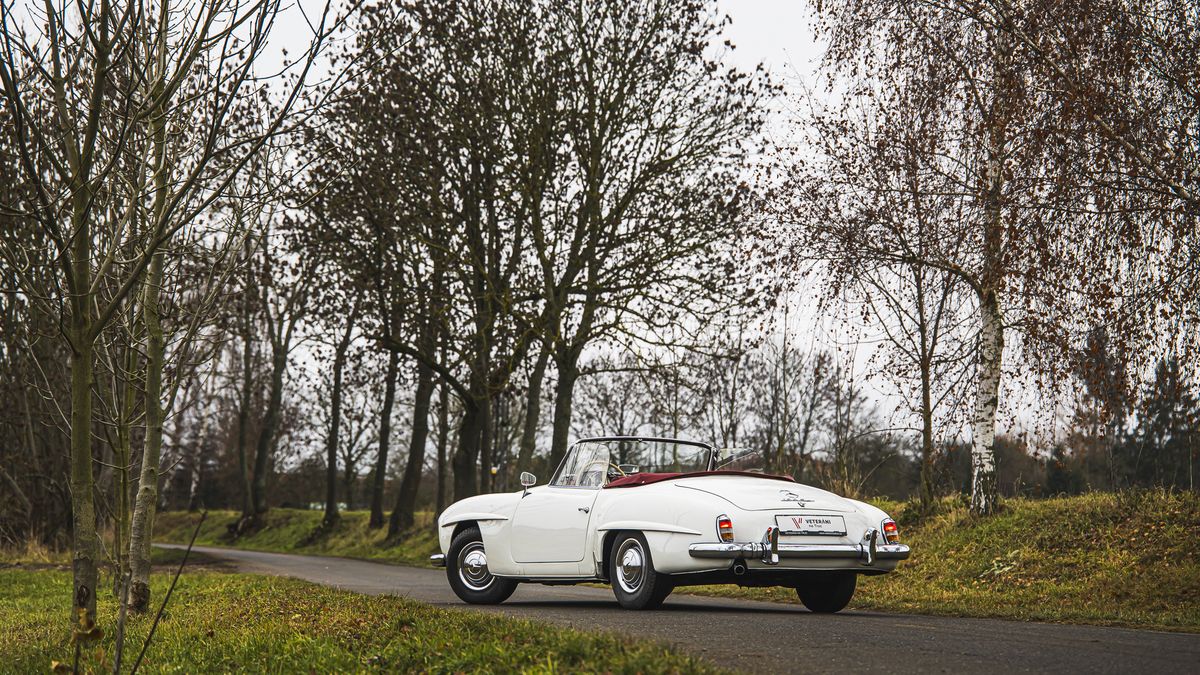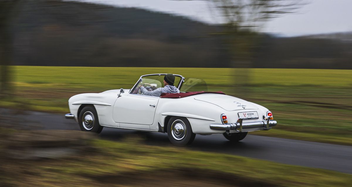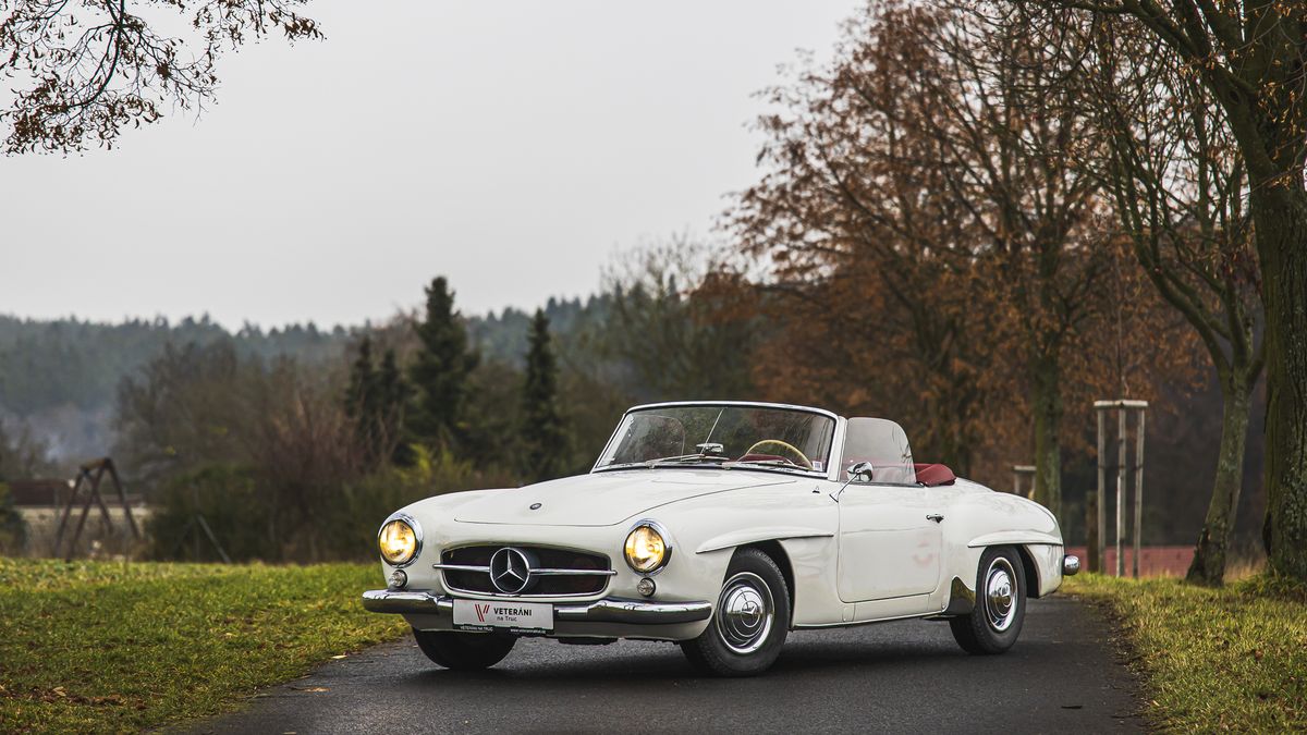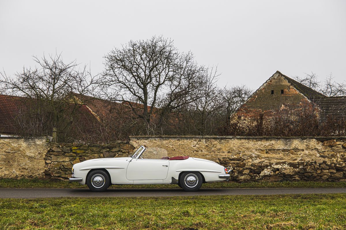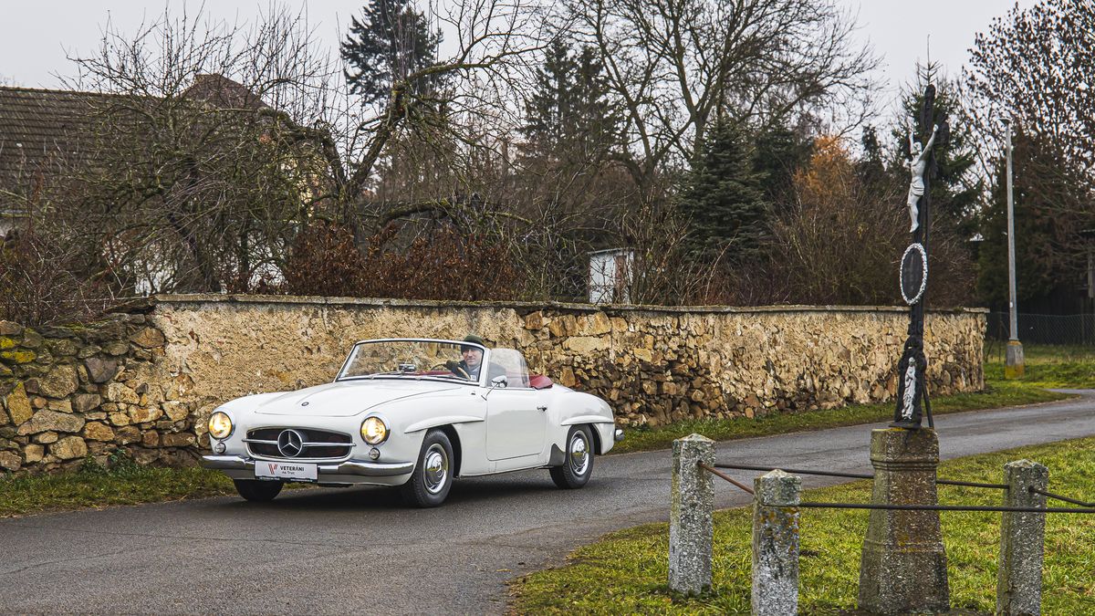 Mercedesu 190 SL to sluší i v naší nefotogenické zimě.