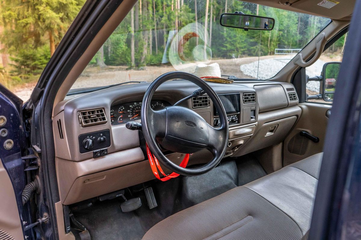 Ford sice nabízel i varianty s pohonem obou náprav, ale tento téměř sedmimetrový kousek z ledna 2001 je klasická zadokolka. I tak ale odveze a utáhne pořádnou porci nákladu. Prakticky jakkoliv těžký přívěs za autem ani neucítíte a na obří korbě můžete klidně i stanovat. Ford F-350 prostě není stylovka, ale pracant se vším všudy.