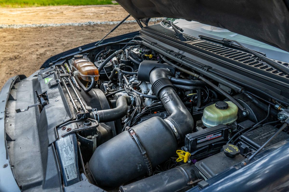 Pod kapotou můžete najít širokou škálu motorů včetně naftových osmiválců. S nimi tam mohou být i benzínové šestiválce a osmiválce, ale v tomto je něco speciálního – vidlicový dvacetiventilový desetiválec Triton SOHC o objemu 6,8 litru. Ten dosahuje výkonu 314 koní (231 kW) a točivého momentu 576 Nm. Pocitově autu nikdy nedochází dech a má nádherně okamžité reakce na plynový pedál. Navíc je motor navržený tak, aby se nepoškodil přehřátím ani v případě, že by přišel o většinu chladící kapaliny. Nevýhodou je vysoká spotřeba kolem dvaceti litrů. Obří nádrž na 170 litrů nebudete chtít nikdy tankovat do plna… Dá se ale řešit zástavbou LPG jako v tomto případě, pak pick-up vyžaduje 25 litrů plynu. Na všech kolech jsou kotoučové brzdy a ocelové disky.