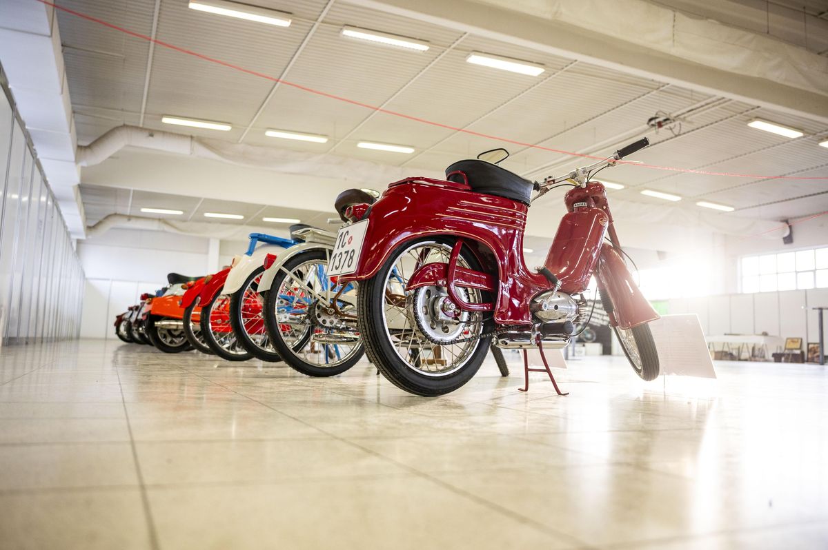 Hlavní výhrou v tombole byl krásný tyrkysový Stadion S11 po kompletní renovaci s novým lakem i chromy. Vyhrál jej do starých motorek nadšený mladík až ze Znojma. Na mašinu nasedl a z areálu odjel, takže předpokládáme, že někdy touhle dobou bude přijíždět domů.