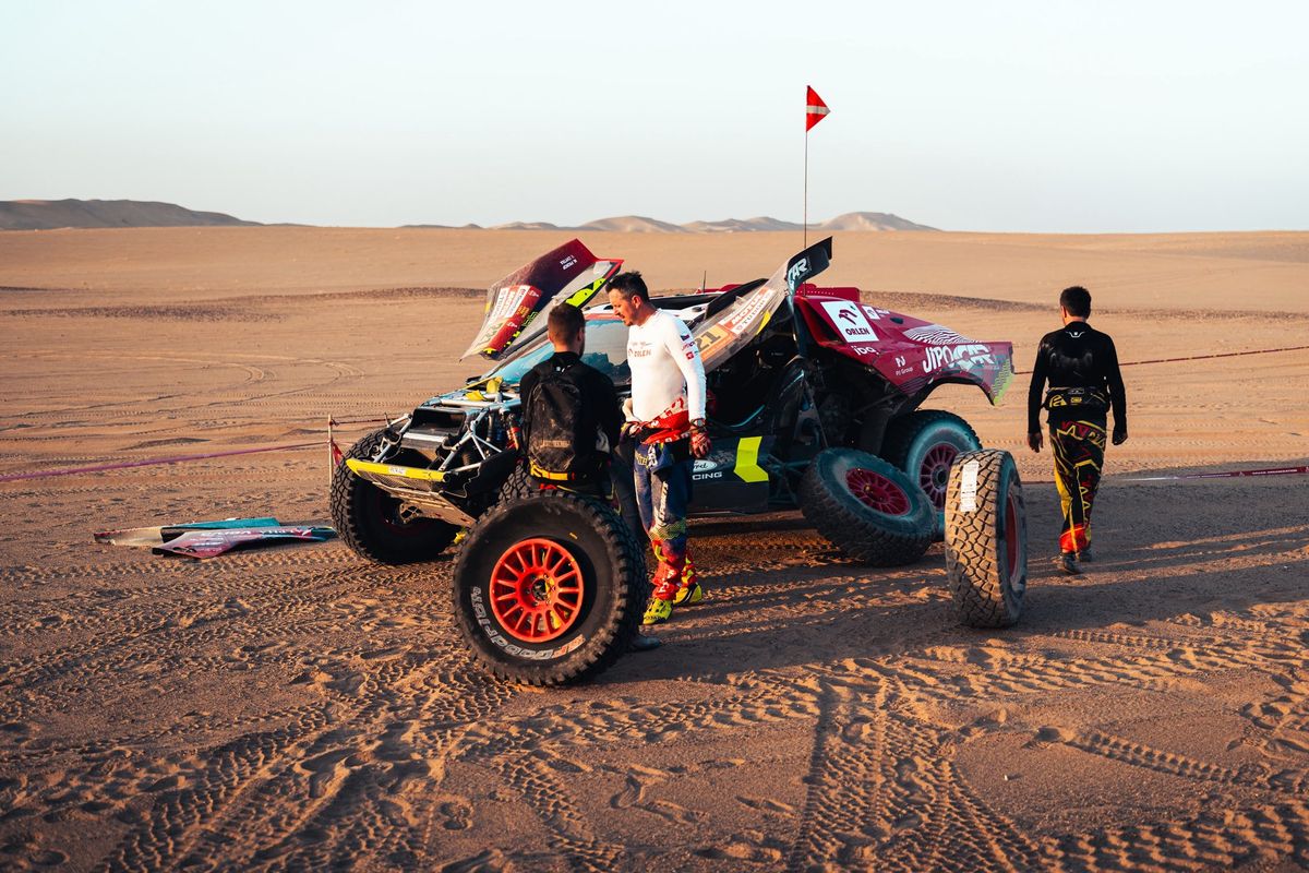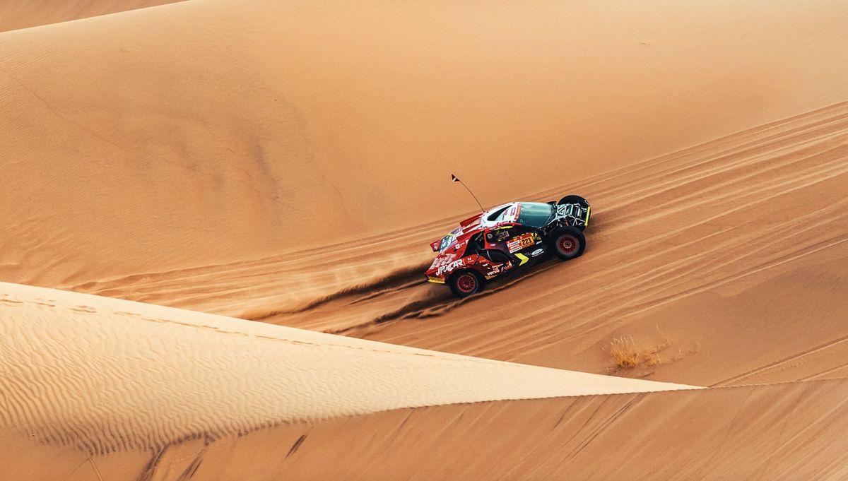 Martin Prokop už si tohle jednou zkusil, kdysi v Americe. Při přejezdu z duny byl příliš kolmo a šel přes čumák. Od té doby najezdil v písku tisíce kilometrů a patří k nejzkušenějším jezdcům ve startovním poli. Přesto se mu úvod druhé maratonské etapy nevydařil, sjel do díry za dunou, která měla tři metry. „Bylo to trochu na boku, trochu na střeše a bylo to tam relativně dlouho,“ řekl pak v cíli.