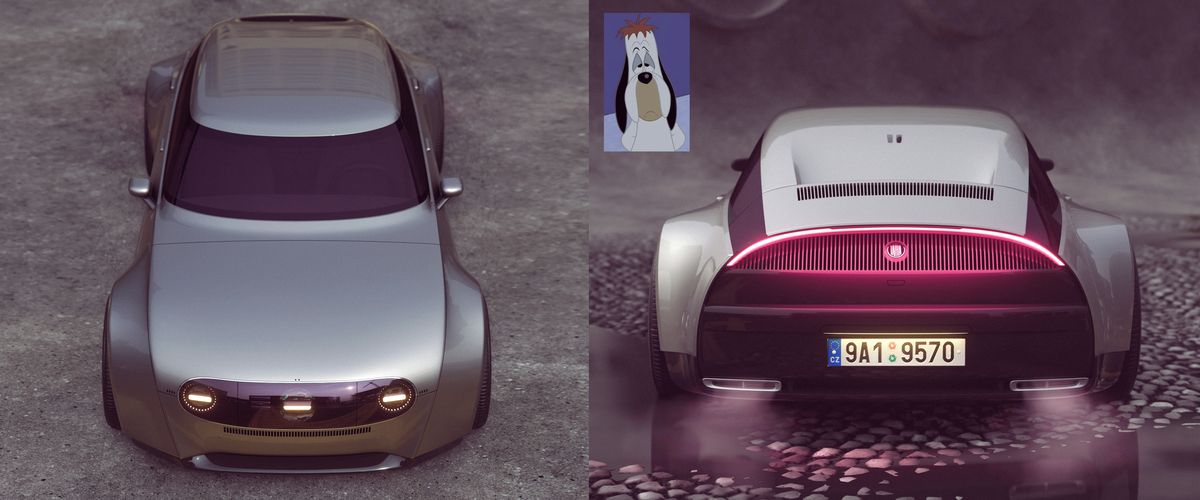 Inspirace je zřejmá na první pohled, koncept totiž dostal podobný profil a uhlazené aerodynamické tvary. Povědomá vám jistě bude také příď s charakteristickým „rámem“ obklopujícím svítilny. Dimitar si dokonce pohrál s prvkem prostředního světla.