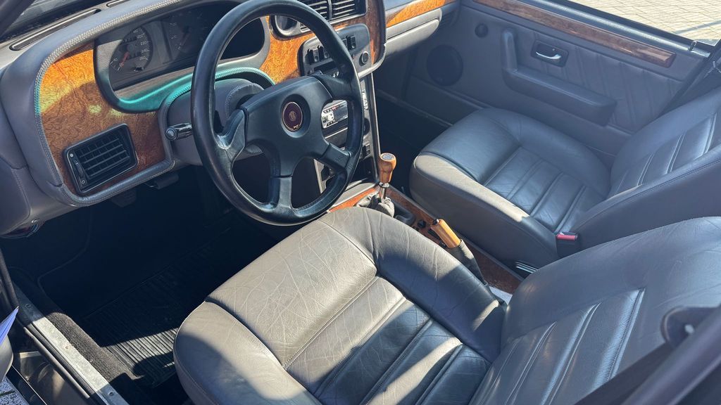 Automobil stojí na originálních litých kolech, má šedý kožený interiér, čtyřramenný sportovní volant, digitální klimu, autorádio. Ze zajímavé výbavy jmenujeme ještě telefon, ale s tím si v dnešní době můžete hrát leda na Macha a Šebestovou.