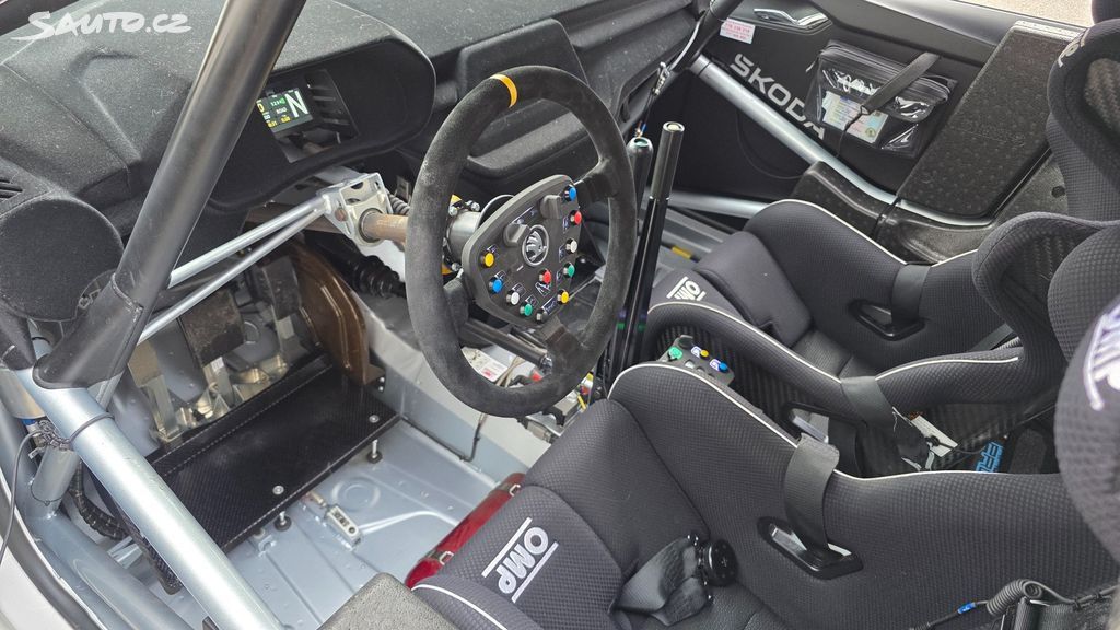 Uvnitř pak najdete ryze oholený závodní interiér, ochranný rám, závodní sedačky, řadicí páku sekvenční převodovky, hydraulickou ruční brzdu, závodní multifunkční volant nebo malý digitální přístrojový štít a další prvky.