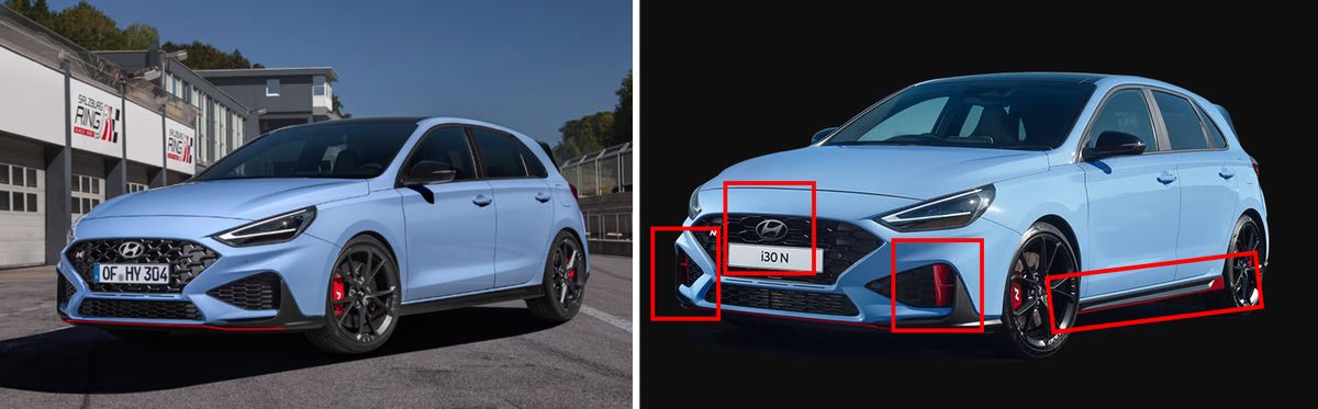 Vlevo vidíte evropský model i30 N, vpravo australský.