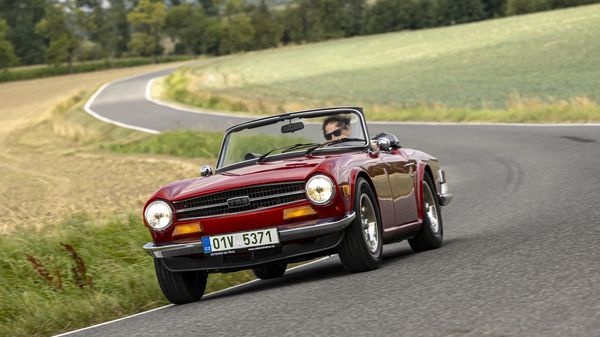 Britský roadster – to je pojem symbolizující otevřené sportovní dvoumístné auto pro radost, které vznikalo ve Velké Británii. Je to vlastně trochu vtipné, protože jak víme, v ostrovním království dost často prší. Dnes nás to ale netrápí, na projížďku s Triumphem TR6 máme krásné letní počasí.
